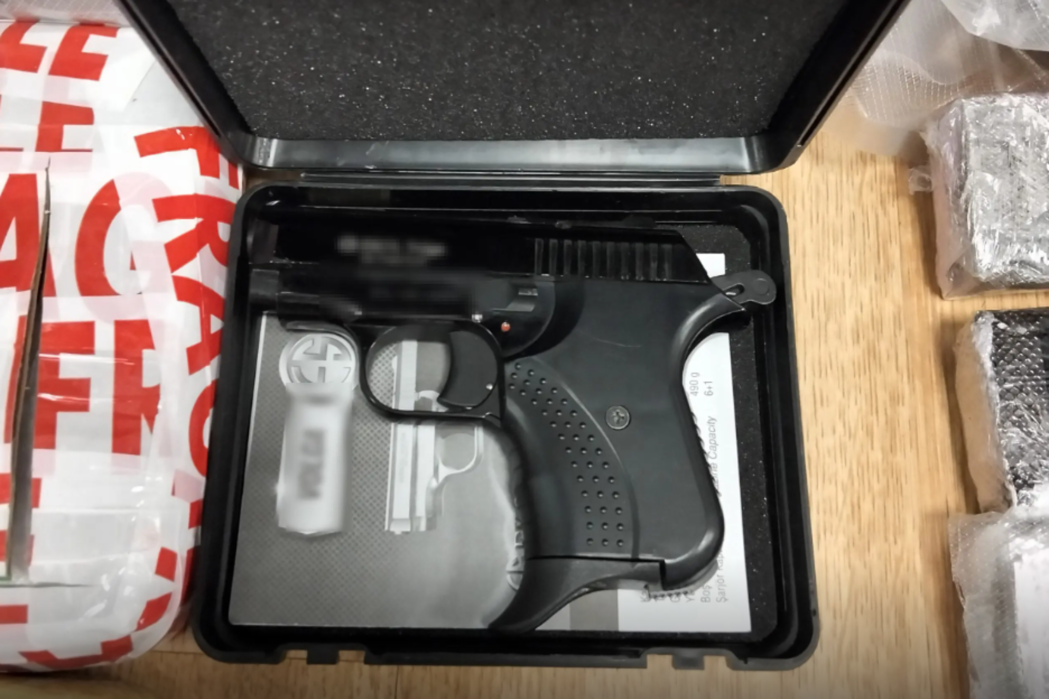 - πιστόλι κρότου με γεμιστήρα και φυσίγγιο κρότου,