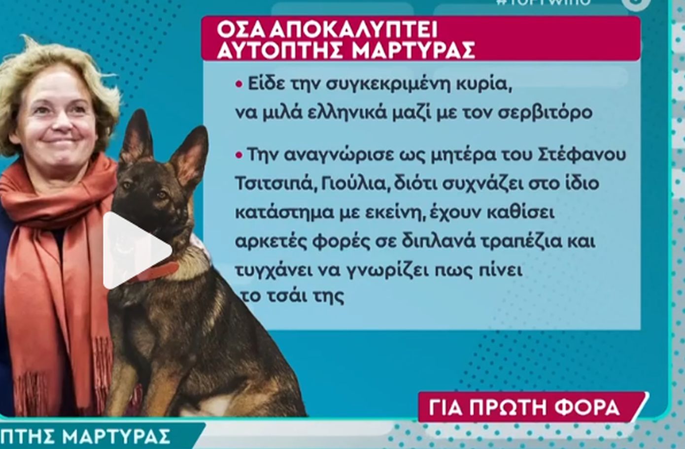 Ο αυτόπτης μάρτυρας δήλωσε στην εκπομπή «Το Πρωινό» πως η μητέρα του Στέφανου Τσιτσιπά δένει το σκυλί απέναντι από την καφετέρια, όπου συχνάζει για να πιει το τσάι της, καθώς στο παρελθόν της είχε απαγορευτεί να μεταβαίνει εντός του καταστήματος με το σκυλί.