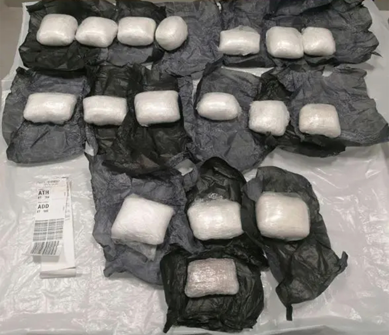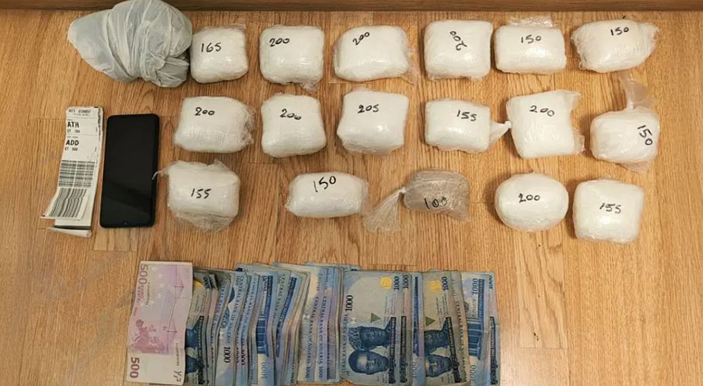 Συνολικά, από την έρευνα που πραγματοποιήθηκε, μεταξύ άλλων βρέθηκαν και κατασχέθηκαν: 16 αυτοσχέδιες νάιλον συσκευασίες, που περιείχαν κοκαΐνη, συνολικού μικτού βάρους 2.835 γραμμάριων και αυτοσχέδια νάιλον συσκευασία, που περιείχε ηρωίνη, συνολικού μικτού βάρους 100 γραμμαρίων. Οι συλληφθείς οδηγήθηκε στην αρμόδια εισαγγελική Αρχή.