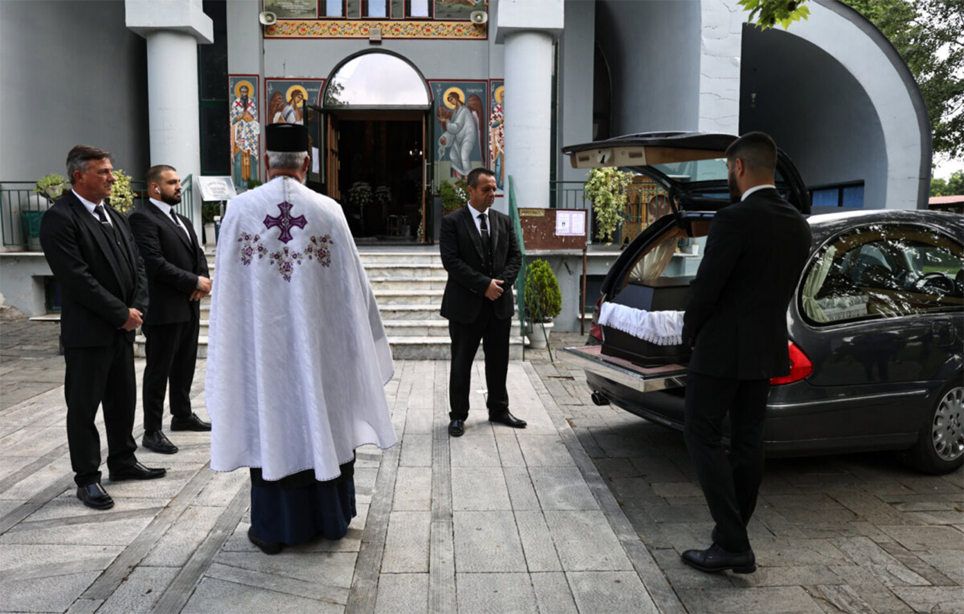Σήμερα, Τετάρτη, η ατμόσφαιρα στη Λάρισα είναι πλημμυρισμένη από οδύνη, καθώς τελείται η εξόδιος ακολουθία της 52χρονης Λουίζας Ρίνη στον Ιερό Ναό Αναστάσεως του Λαζάρου, στο Νέο Κοιμητήριο Λάρισας, η οποία έπεσε νεκρή από τις μαχαιριές του 21χρονου γιου της.