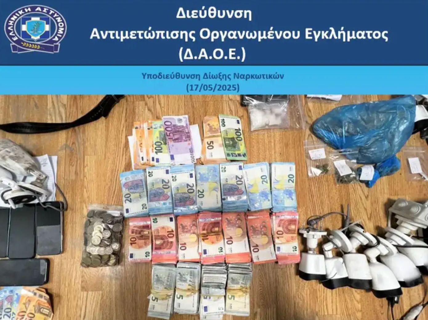 Κατά την αστυνομική επέμβαση σε πσίτια στην Αγία Βαρβάρα, εντοπίστηκαν τα 3 μέλη της συμμορίας να κατέχουν ναρκωτικές ουσίες με σκοπό τη διακίνηση, ενώ από τις έρευνες που πραγματοποιήθηκαν σε οικίες, καθώς και από την κατοχή των συλληφθέντων, βρέθηκαν και κατασχέθηκαν: