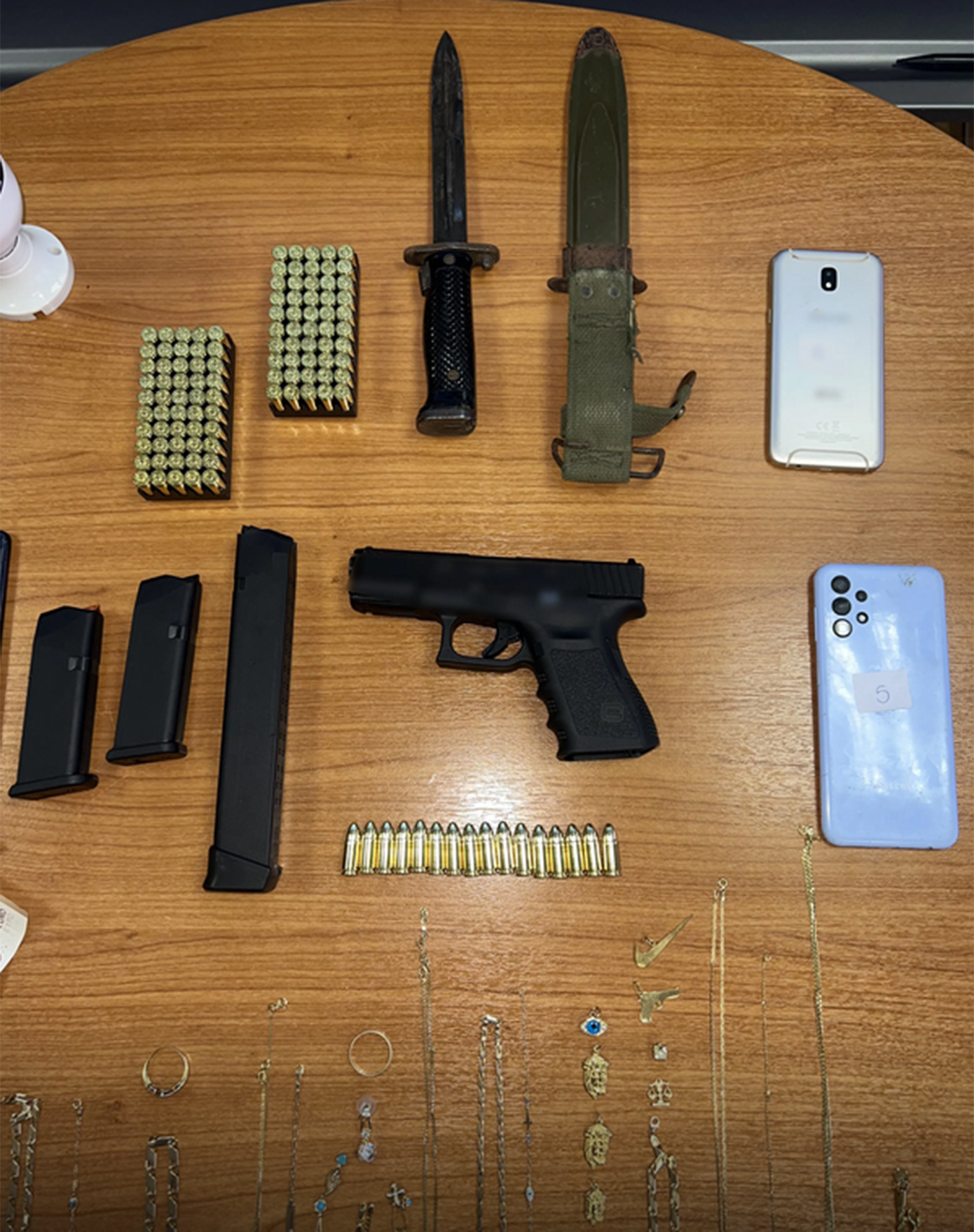 Κατά τις έρευνες συνελήφθη 23χρονη, σε βάρος της οποίας σχηματίσθηκε δικογραφία για παράβαση της νομοθεσίας περί όπλων και αποδοχή και διάθεση προϊόντων εγκλήματος, ενώ κατηγορούμενος για την υπόθεση είναι και ένας 24χρονος.
