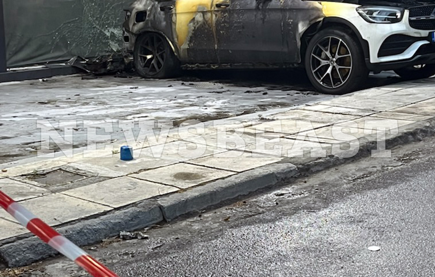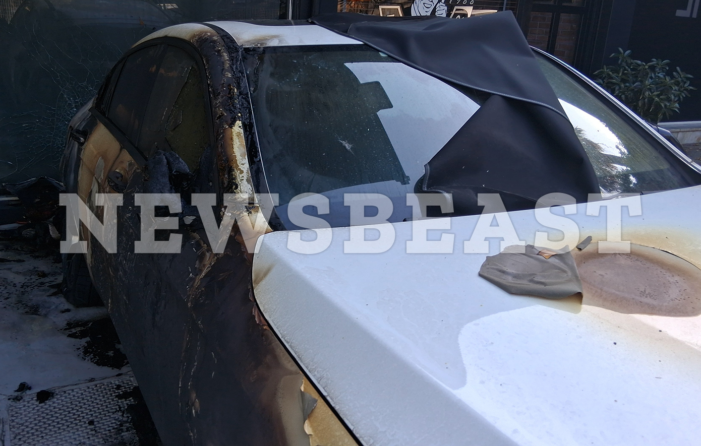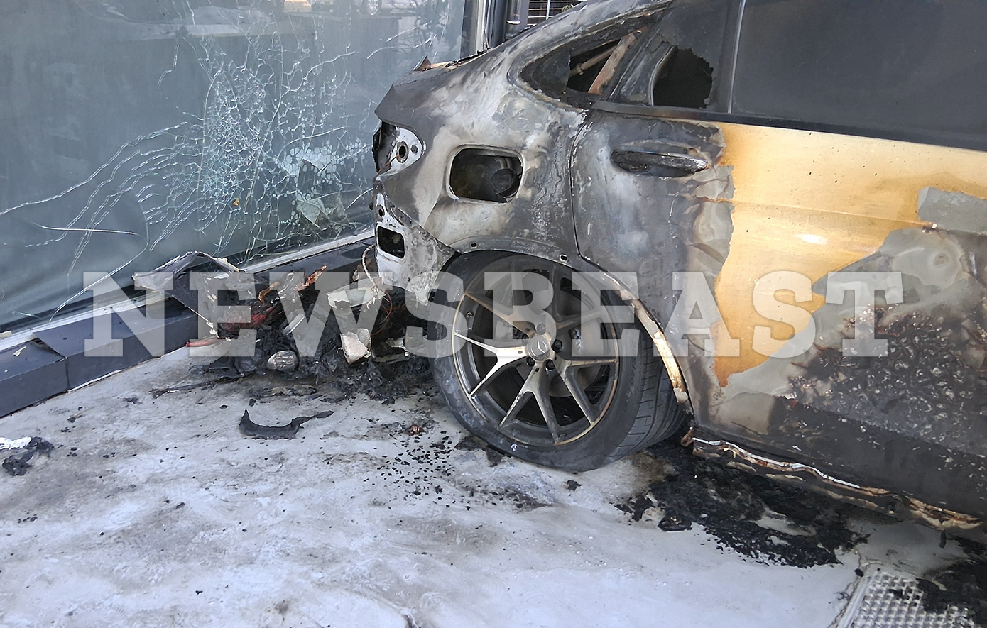 Καταστράφηκε ολοσχερώς ένα σταθμευμένο πολυτελές Ι.Χ. αυτοκίνητο, ενώ ένα δεύτερο υπέστη μικρότερης έκτασης υλικές ζημιές.