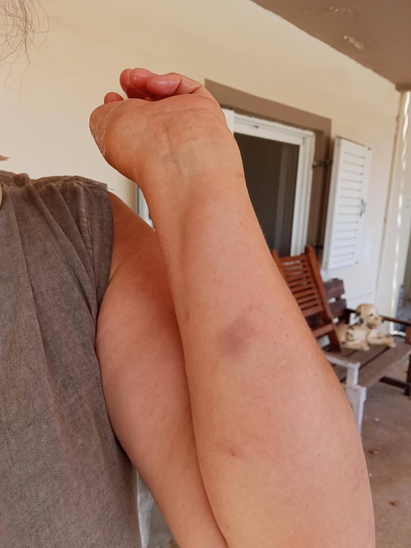 Όπως αφηγείται η ίδια, «πήγα στη λαϊκή στα Λεχαινά και εκεί βρήκα τον ίδιο άνθρωπο που είχε συλληφθεί και στο παρελθόν για κακοποιητική συμπεριφορά απέναντι στα ζώα, να πουλάει κουταβάκια. Τον ρώτησα τι κάνει με τα σκυλάκια και άρχισε να με βρίζει χυδαία και να με χτυπάει. Άρχισε να μου ρίχνει χαστούκια και να με τραβάει από τα μαλλιά μπροστά σε όλο τον κόσμο. Αμέσως μετά εξαφανίστηκε και εγώ πήγα στο τμήμα να καταγγείλω το γεγονός και να υποβάλλω μήνυση».