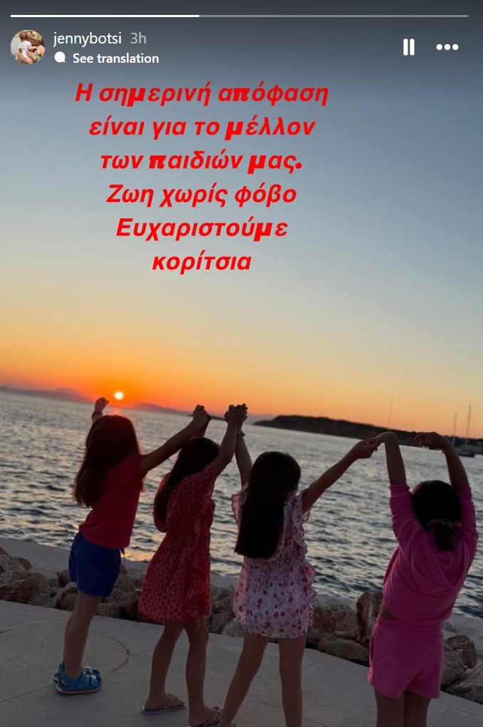 «Η σημερινή απόφαση είναι για το μέλλον των παιδιών μας. Ζωή χωρίς φόβο. Ευχαριστούμε κορίτσια» σημειώνει χαρακτηριστικά.