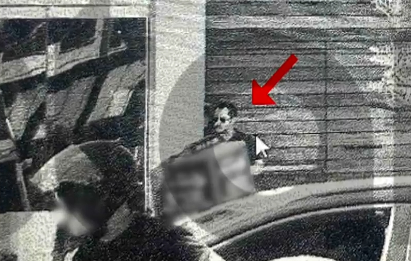 Η πρώτη τραβήχτηκε στις 2:43 το μεσημέρι. Σε αυτή, φαίνεται ο καθηγητής να φορά γυαλιά ηλίου και να στέκεται σε έναν τοίχο σε πεζοδρόμιο. Σε αυτή τη φωτογραφία δε φαίνεται τι φορά, αφού εκείνη την ώρα περνούσε ένα αυτοκίνητο.