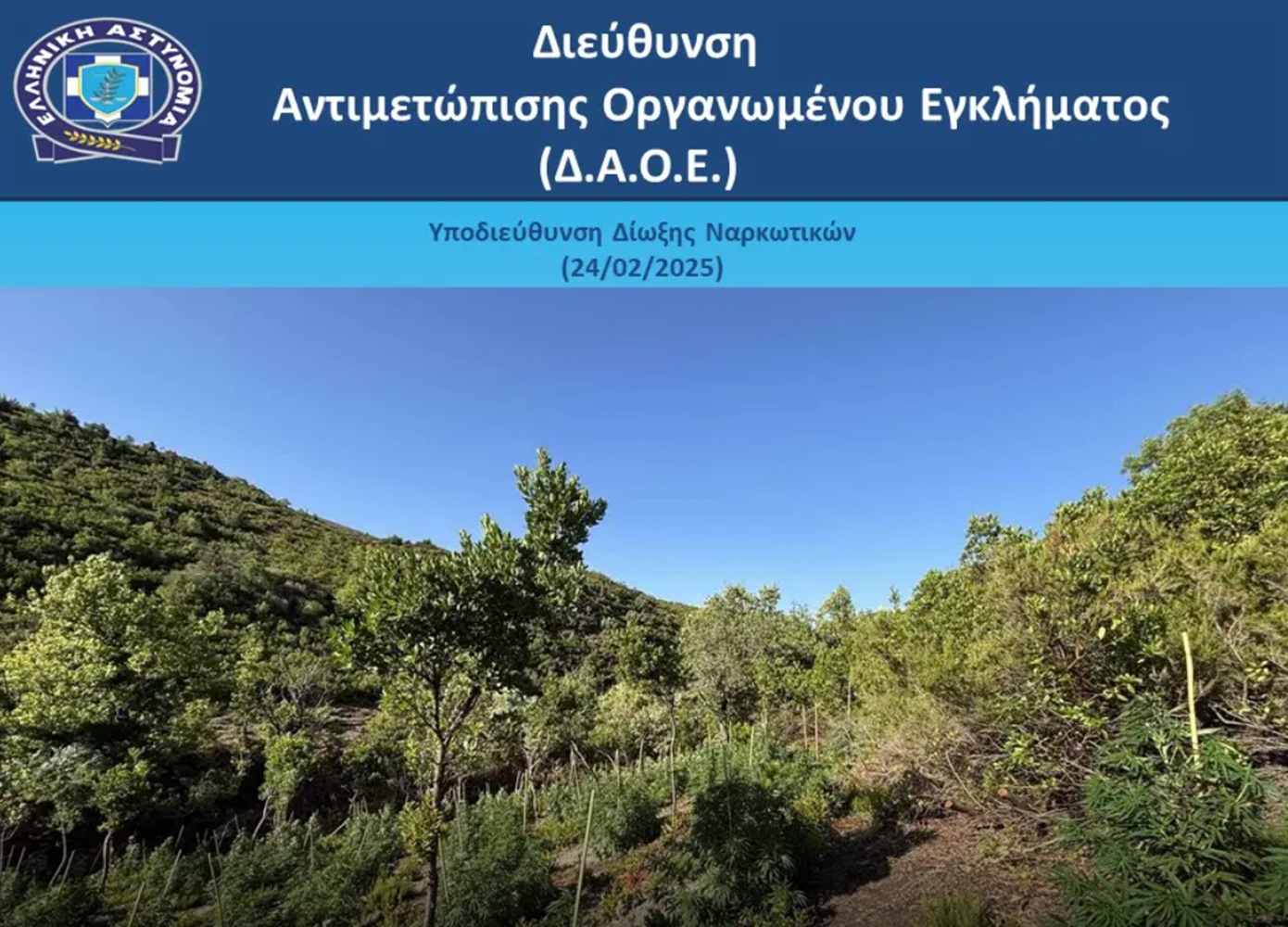 Εξαρθρώθηκε από τη Διεύθυνση Αντιμετώπισης Οργανωμένου Εγκλήματος εγκληματική οργάνωση, τα μέλη της οποίας δραστηριοποιούνταν στην καλλιέργεια δενδρυλλίων κάνναβης σε δύσβατες περιοχές της Βοιωτίας και Ευβοίας, με σκοπό την περαιτέρω διακίνηση και την αποκόμιση παράνομου οικονομικού οφέλους.