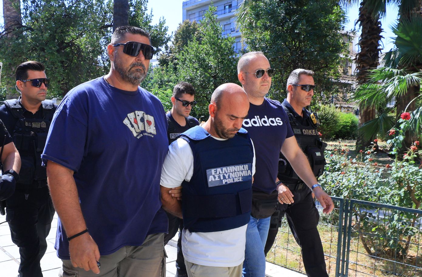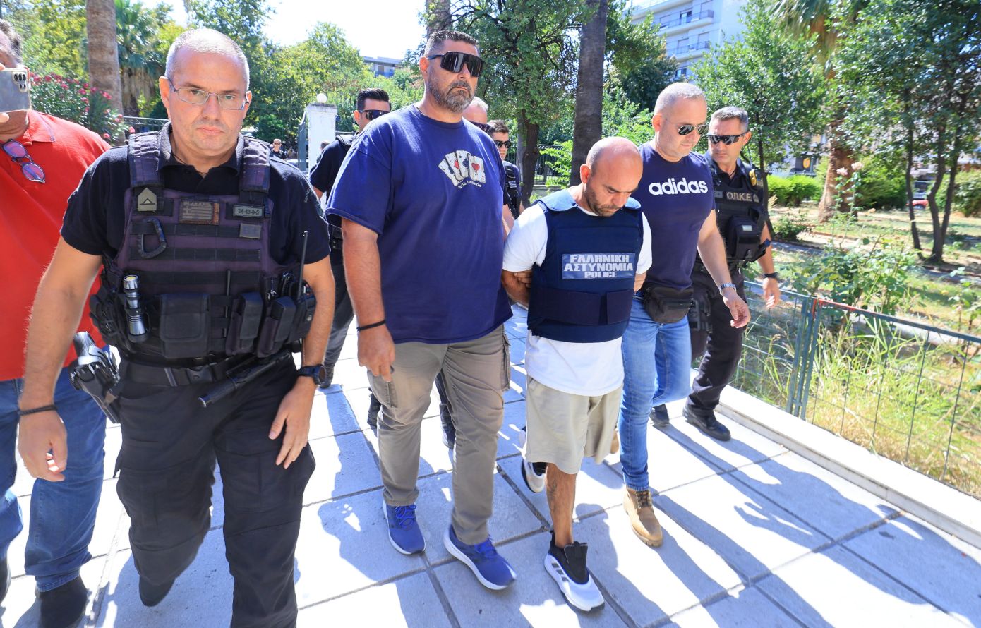 Ο 40χρονος γυναικοκτόνος οδηγήθηκε υπό δρακόντεια μέτρα ασφαλείας στο δικαστικό μέγαρο του Βόλου. Με σκυμμένο το κεφάλι, αμίλητος και φορώντας αλεξίσφαιρο γιλέκο οδηγήθηκε στον εισαγγελέα.