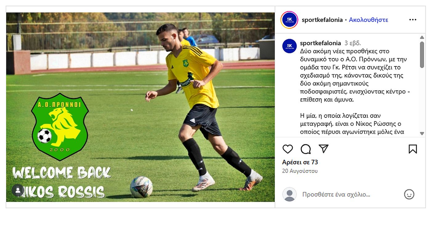 Ο Νίκος Ρώσσης εργαζόταν σε κατάστημα εστίασης στη Σκάλα και είχε ξεχωρίσει από μικρή ηλικία για το ταλέντο του στο ποδόσφαιρο, έχοντας περάσει από ακαδημίες και ομάδες της Κεφαλονιάς, αλλά και της Αργυρούπολης. Από φέτος επρόκειτο να επιστρέψει στην ομάδα των Πρόννων, με την οποία θα συνέχιζε την αθλητική του πορεία.