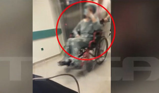 Η γυναίκα διακρίνεται σε αναπηρικό αμαξίδιο, κρατώντας μια μάσκα και κρύβοντας τα τραύματα στο πρόσωπό της, με βάση την εικόνα που δημοσίευσε το Live News.