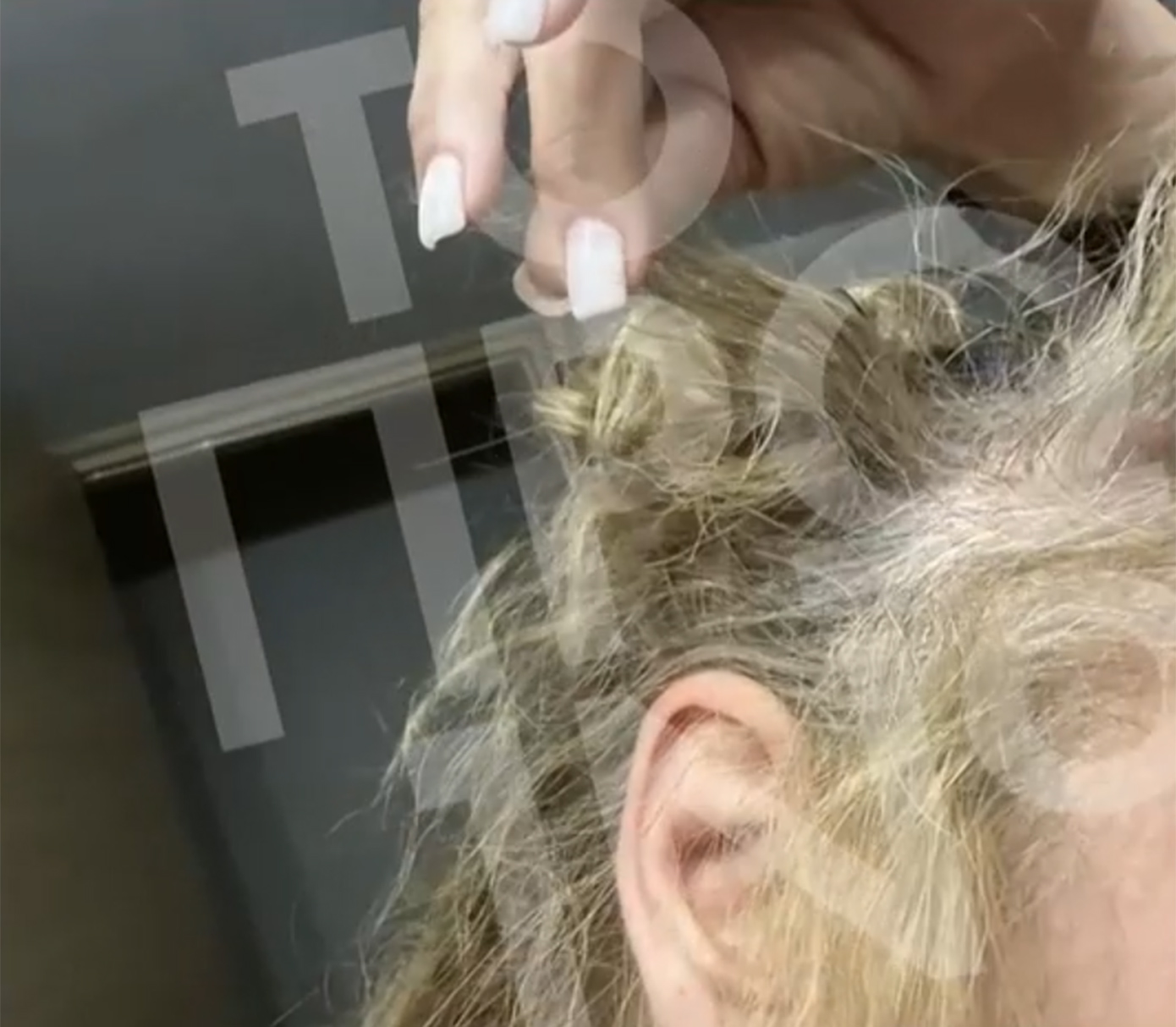 Σύμφωνα με το θύμα, την άρπαξε από τα μαλλιά και άρχισε να τη χτυπά με μανία μέσα στο αυτοκίνητό της. Από τις φωτογραφίες που δημοσίευσε η εκπομπή του Γιώργου Λιάγκα φαίνεται ότι της λείπει τούφα μαλλιών.