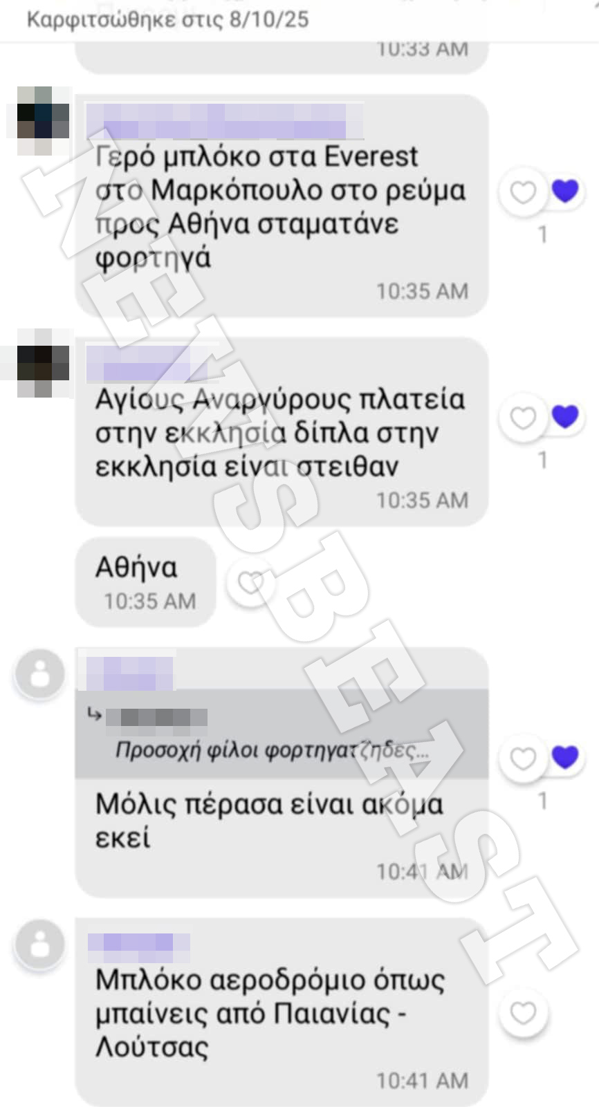 Το Newsbeast εξασφάλισε μηνύματα από τις ομάδες που φαίνεται να είχαν δημιουργήσει οι δύο συλληφθέντες, από τα οποία προκύπτει η προειδοποίηση οδηγών για μπλόκα της Τροχαίας. Η έρευνα της ΕΛ.ΑΣ. ξεκίνησε τον περασμένο Ιούλιο, αναφορικά με τη λειτουργία παράνομης διαδικτυακής κοινότητας, μέσω διαδικτυακής εφαρμογής ανταλλαγής μηνυμάτων και κλήσεων που είχε ως σκοπό την άμεση, μαζική και αμφίδρομη ενημέρωση των μελών της, καθ’ όλο το 24ωρο, σχετικά με τα ακριβή σημεία και τον χρόνο διενέργειας αστυνομικών ελέγχων, ανά την επικράτεια.