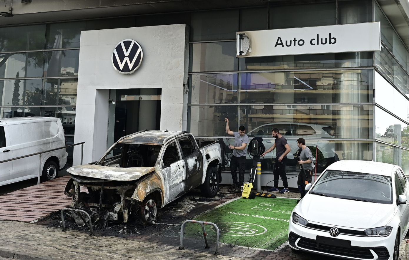 Εμπρηστική επίθεση έγινε τα ξημερώματα της Δευτέρας 27 Οκτωβρίου σε μία αντιπροσωπεία οχημάτων, που βρίσκεται στη συμβολή των οδών Θεσσαλονίκης και Λαρίσης στη Νέα Φιλαδέλφεια.