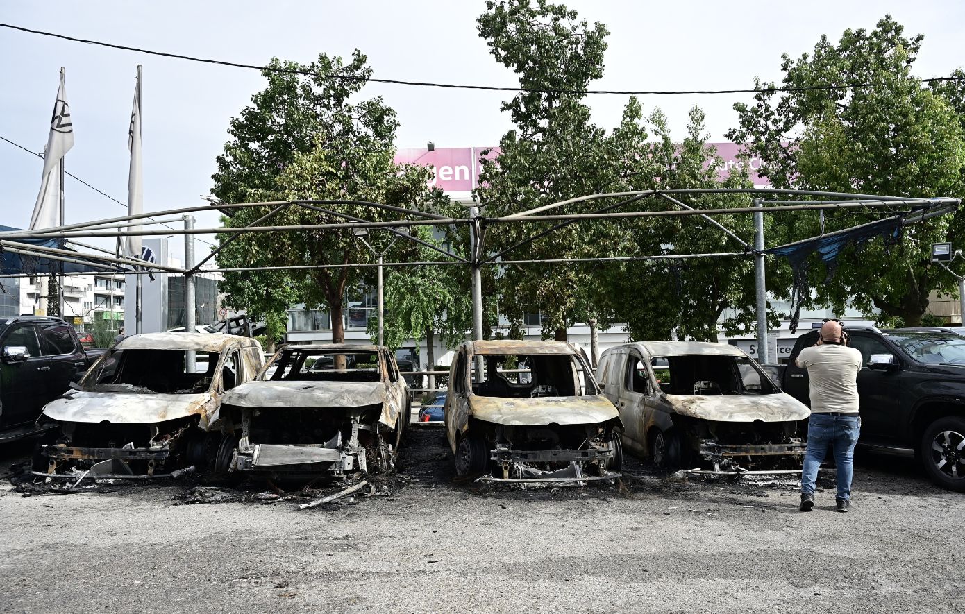 Από την πυρκαγιά κάηκαν ολοσχερώς πέντε οχήματα, ενώ ακόμα τρία υπέστησαν εκτεταμένες φθορές.