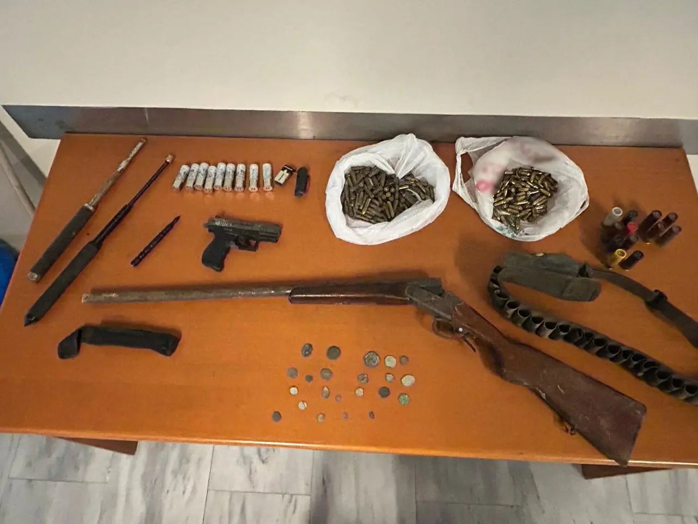 Κατά τις έρευνες βρέθηκαν και κατασχέθηκαν όπλα, πυρομαχικά και λοιπά αντικείμενα, τα οποία έχουν αποσταλεί για εργαστηριακή εξέταση.