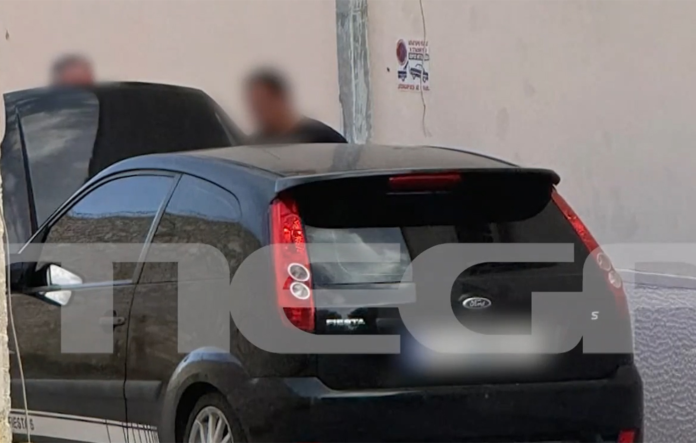 Ακολουθούν φωτογραφίες που δημοσίευσε το Mega και δείχνουν τον κρατούμενο να επιδιορθώνει το αυτοκίνητο του σωφρονιστικού υπαλλήλου: