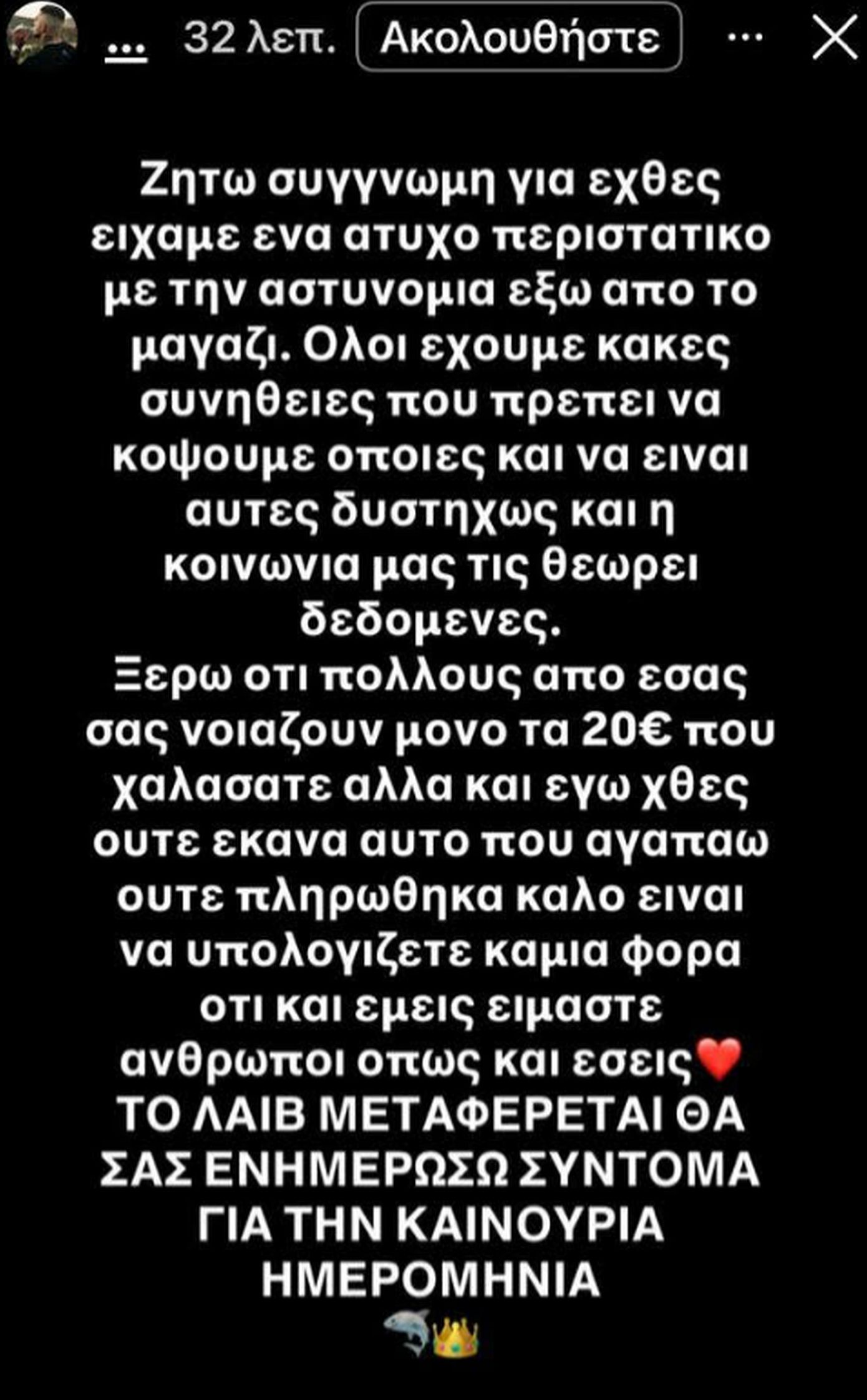 O Kidd σήμερα έκανε ανάρτηση στην οποία ζητάει συγγνώμη από τον κόσμο που αναβλήθηκε το πάρτι και έκανε λόγο για κακιά συνήθεια που πρέπει να κόψει.