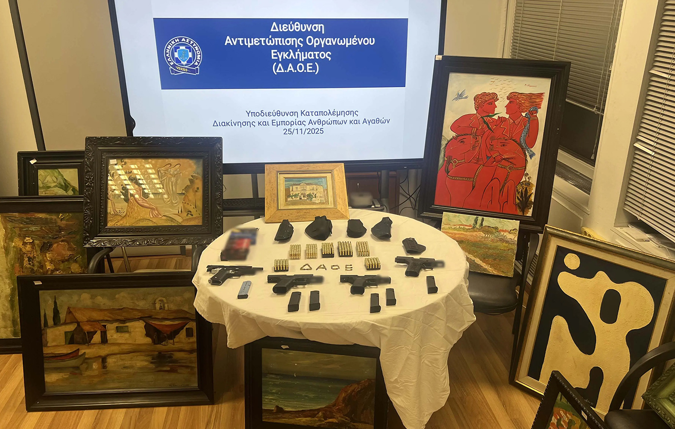 Αστυνομικοί της Διεύθυνσης Αντιμετώπισης Οργανωμένου Εγκλήματος συνέλαβαν το πρωί της Τρίτης 25 Νοεμβρίου δύο Έλληνες, ηλικίας 42 και 57 ετών, στο πλαίσιο διενέργειας προκαταρκτικής εξέτασης για δοσοληψία πλήθους πλαστών πινάκων ζωγραφικής, ενώ ο 57χρονος κατηγορείται επιπλέον για παράβαση της νομοθεσίας για τα όπλα.