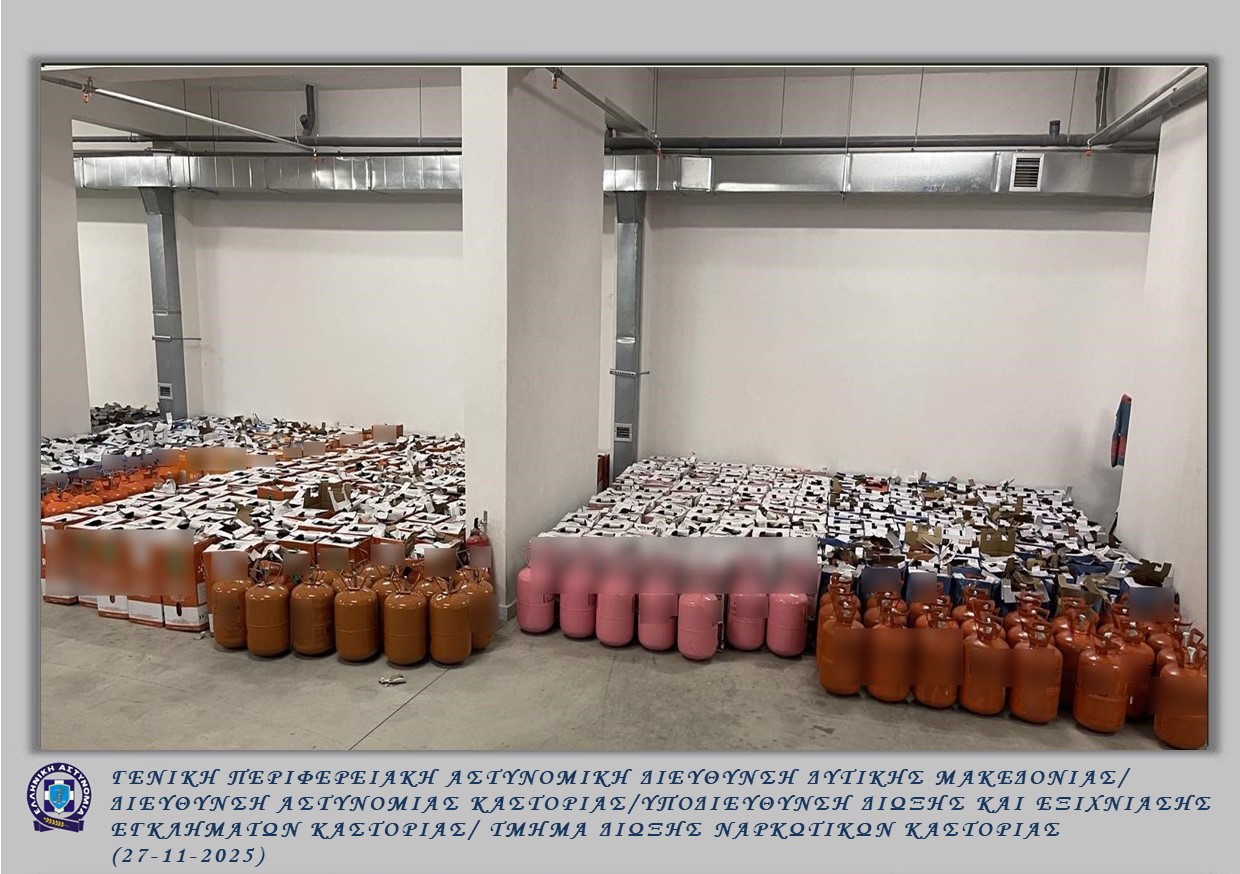 Πολυμελής εγκληματική οργάνωση, τα μέλη της οποίας προέβαιναν σε παράνομη εισαγωγή και διακίνηση μεγάλων ποσοτήτων φιαλών φθοριούχου ψυκτικού υγρού (φρέον) από την Αλβανία στην Ελλάδα, εξαρθρώθηκε από αστυνομικούς της Υποδιεύθυνσης Δίωξης και Εξιχνίασης Εγκλημάτων Καστοριάς.