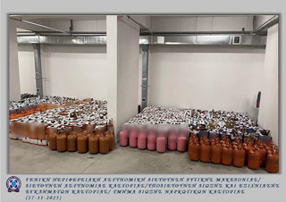 Στη συνέχεια, τις προαναφερόμενες φιάλες παραλάμβανε 41χρονος υπάλληλος μεταφορικής εταιρείας, ο οποίος τις μετέφερε στις αποθήκες αυτής με έδρα σε περιοχή της Κοζάνης, ιδιοκτησίας 48χρονου και ακολούθως αυτές μεταφέρονταν από 46χρονο υπάλληλο της ίδιας μεταφορικής εταιρείας, στις αποθήκες άλλης μεταφορικής εταιρείας, με έδρα σε περιοχή της Θεσσαλονίκης, που πραγματοποιούσε την περαιτέρω διανομή τους σε περιοχές της ελληνικής επικράτειας.
