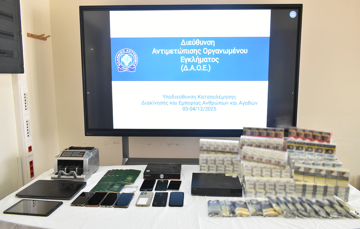 Στην εξάρθρωση εγκληματικής οργάνωσης προχώρησε η Διεύθυνση Αντιμετώπισης Οργανωμένου Εγκλήματος, τα μέλη της οποίας δραστηριοποιούνταν στην εμπορία ανθρώπων, με σκοπό τον εξαναγκασμό τους στην παράνομη πώληση καπνικών προϊόντων.