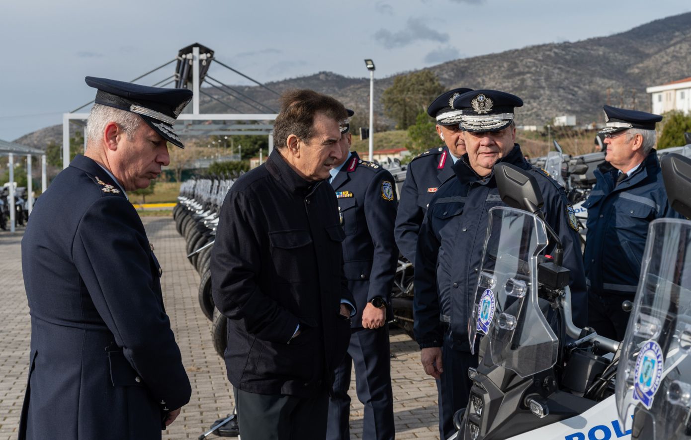 «Οι πιο μάχιμες υπηρεσίες της ΕΛ.ΑΣ.: η Άμεση Δράση, η ΔΙ.ΑΣ, η Τροχαία, όλες οι ομάδες, που είναι παρούσες κάθε φορά όταν ο πολίτης καλεί την Αστυνομία, όλες αυτές οι ομάδες -και συνολικά η Ελληνική Αστυνομία- παραλαμβάνουν σήμερα περισσότερες από 400 νέες μοτοσικλέτες», τόνισε ο υπουργός Προστασίας του Πολίτη, Μιχάλης Χρυσοχοΐδης.