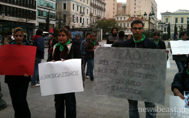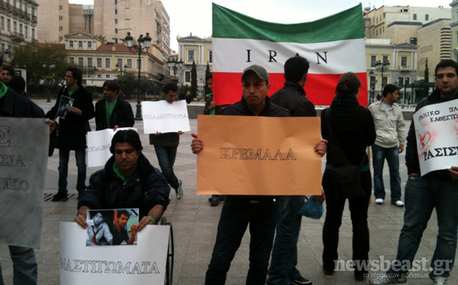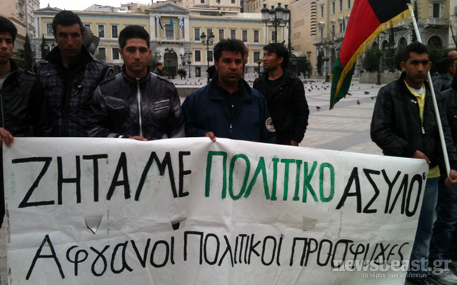 Την ίδια ώρα, στην πλατεία Κοτζιά ομάδα περίπου 30-40 μεταναστών από το Ιράν και το Αφγανιστάν κρατώντας πλακα΄τ στα χέρια ζητούν πολιτικό άσυλο.