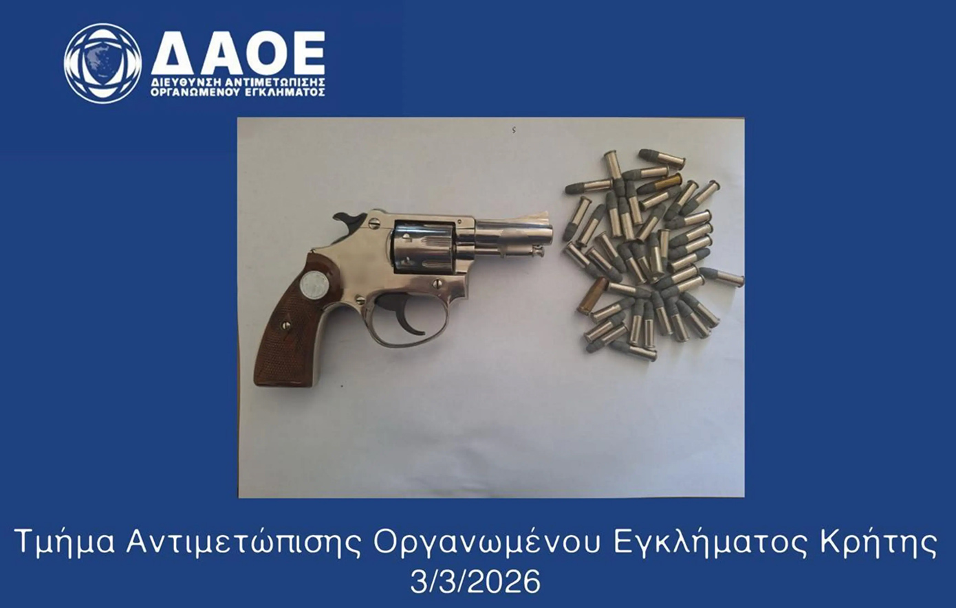 Πάνω από 3.000 κροτίδες, περίστροφο και φυσίγγια βρέθηκαν στην Κρήτη στην κατοχή 59χρονου και 48χρονου, που συνελήφθησαν από το Τμήμα Αντιμετώπισης Οργανωμένου Εγκλήματος Κρήτης της Διεύθυνσης Αντιμετώπισης Οργανωμένου Εγκλήματος, την Τρίτη, στο Ηράκλειο.