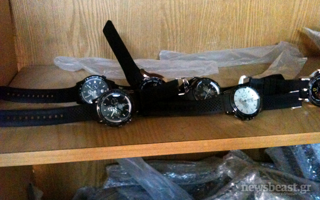 Τρεις αποθήκες γεμάτες με δεκάδες χιλιάδες ρολόγια και παπούτσια, απομιμήσεις γνωστών εταιρειών, εντοπίστηκαν στο Μεταξουργείο.