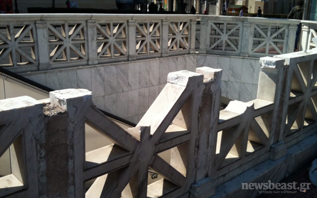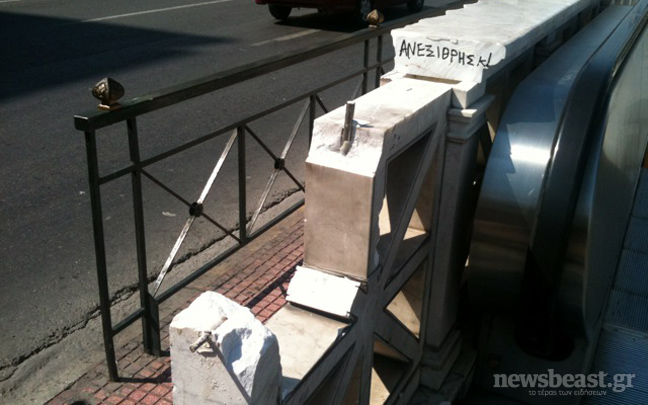 Εμφανείς οι καταστροφές στις εισόδους του μετρό Πανεπιστημίου