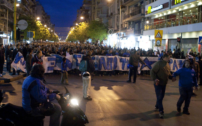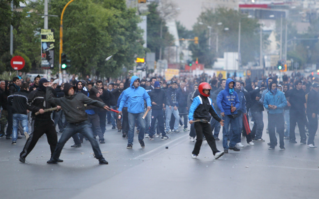 Όλα ξεκίνησαν όταν 150-200 οπαδοί του ΠΑΟΚ κατέλαβαν την Καμάρα, τον χώρο όπου σε λίγη ώρα θα ξεκινούσε η πορεία των οπαδών του Ηρακλή κατά της απόφασης της ΕΠΟ για μη αδειοδότηση της ομάδας.