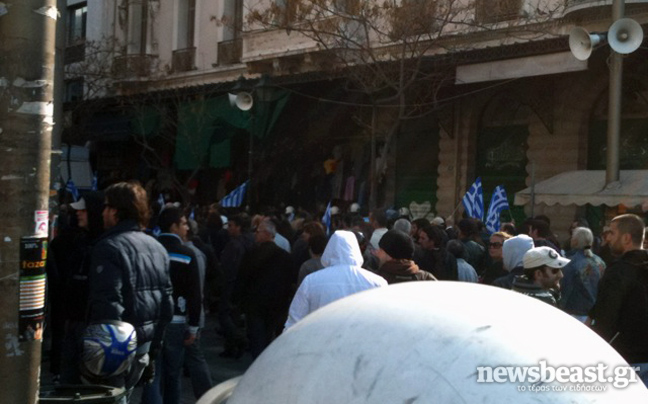Μια μικρή ομάδα διαδηλωτών κυνήγησε μετανάστες που βρέθηκαν στο δρόμο τους στην Ομόνοια και προς στιγμήν δημιουργήθηκε ένταση, ωστόσο τα πνεύματα ηρέμησαν μετά από την παρέμβαση των ψυχραιμότερων.