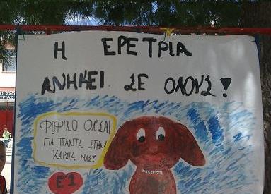 Την δική τους κατακραυγή πρόσφεραν οι μαθητές του δημοτικού σχολείου στην Ερέτρια για τους υπάνθρωπους συμπολίτες τους που σκόρπισαν τον θάνατο στους αδέσποτους φίλους τους, σκύλους και γάτες που ζούσαν αρμονικά μαζί τους.