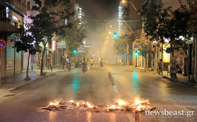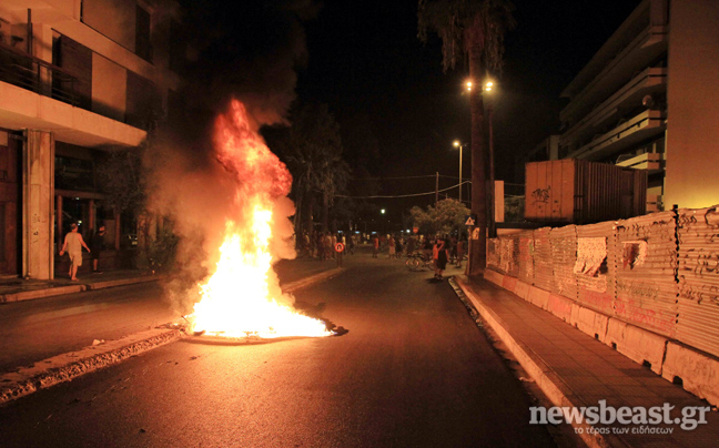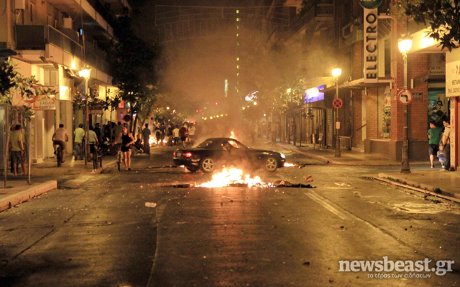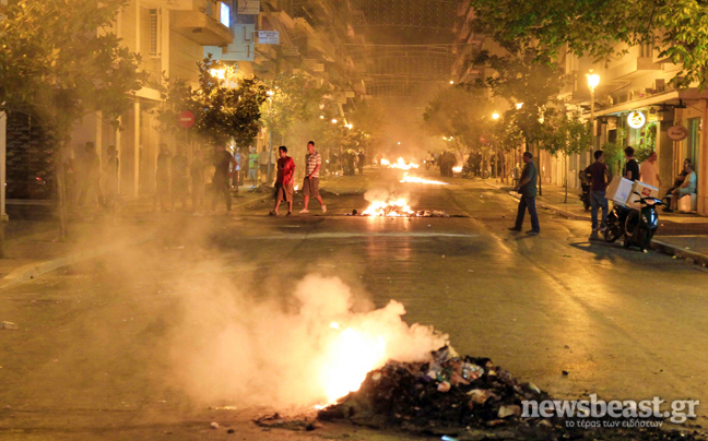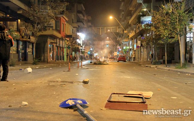 Οι νεαροί προκάλεσαν σημαντικές φθορές σε τράπεζες, έκαψαν 25 κάδους απορριμμάτων ενώ τραυματίστηκε ελαφρά ένας αστυφύλακας και προκλήθηκαν μικρές φθορές σε ένα περιπολικό.