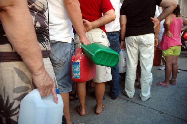 Και όμως δεν προέρχεται από κάποια υποανάπτυκτη και τριτοκοσμική χώρα αλλά από την Ελλάδα και πιο συγκεκριμένα στη Λάρισα όπου οι άνθρωποι κάθονται υπομονετικά στην ουρά για να πάρουν λίγα λίτρα βενζίνης ούτε ώστε να μπορούν να κινηθούν.