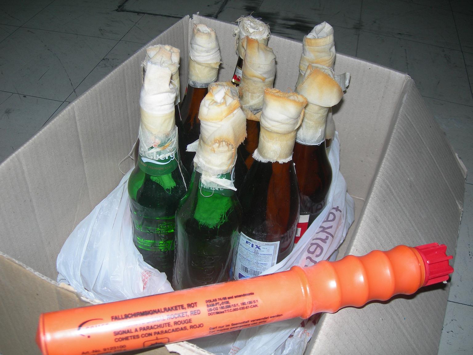 Μόλις αντιλήφθηκαν την πρόθεση των αστυνομικών, κάποια από τα άτομα έριξαν στο οδόστρωμα της οδού Ανδρέα Παπανδρέου καθώς και της Αττικής οδού, τα παρακάτω αντικείμενα, τα οποία βρέθηκαν από τις αστυνομικές δυνάμεις και κατασχέθηκαν: