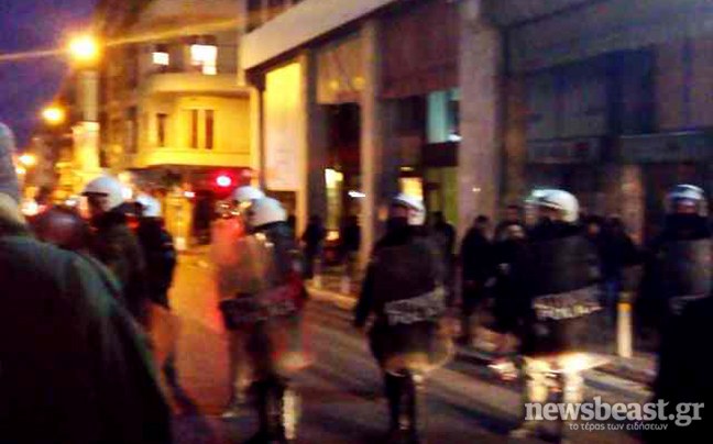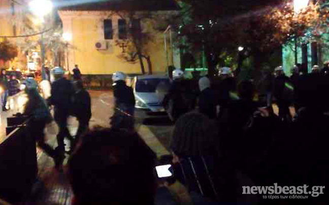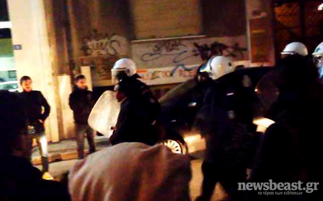 Δεκαπέντε άτομα προσήχθησαν όταν διμοιρία των ΜΑΤ μετέβη στο Πνευματικό Κέντρο του Δήμου Αθηναίων, στην οδό Ακαδημίας.