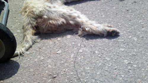 Κι έτσι το άτυχο σκυλί δολοφονήθηκε δύο φορές, μία από τον ιδιοκτήτη του που το εγκατέλειψε με αυτόν τον αχαρακτήριστο τρόπο και μία δεύτερη από το Δήμο που αδιαφόρησε και το άφησε να κείτεται νεκρό στην άκρη του δρόμου για περισσότερο από ένα 24ωρο με δεμένο το σύρμα στο ποδαράκι του…