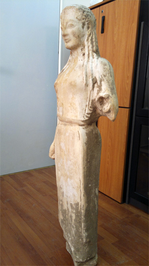 Στον εισαγγελέα Πρωτοδικών Αθηνών οδηγήθηκαν δύο Έλληνες που συνελήφθησαν στη Χασιά Αττικής επειδή κατείχαν παράνομα σε ποιμνιοστάσιο, μνημείο κόρης («πεπλοφόρος»), αρχαϊκών χρόνων (520 π.χ.), ύψους περίπου 1,20μ..