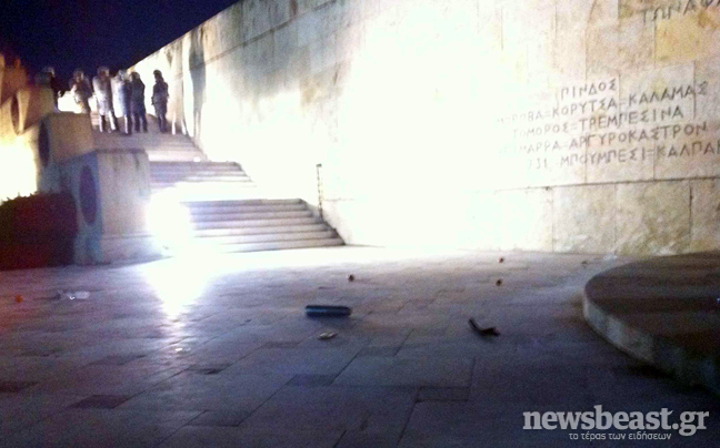 Εν τω μεταξύ έχουν γίνει ζημιές στα φυλάκια του Άγνωστου Στρατιώτη, έσπασαν τζάμια και η αστυνομία απομακρύνει αυτή την ώρα τον κόσμο προς τα κάτω.