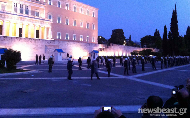 Εδώ και μερικά λεπτά έχει ξεκινήσει συντονισμένη επιχείρηση των ΜΑΤ για να απομακρύνουν τους συγκεντρωμένους και να ανοίξει η λεωφόρος Αμαλίας.
