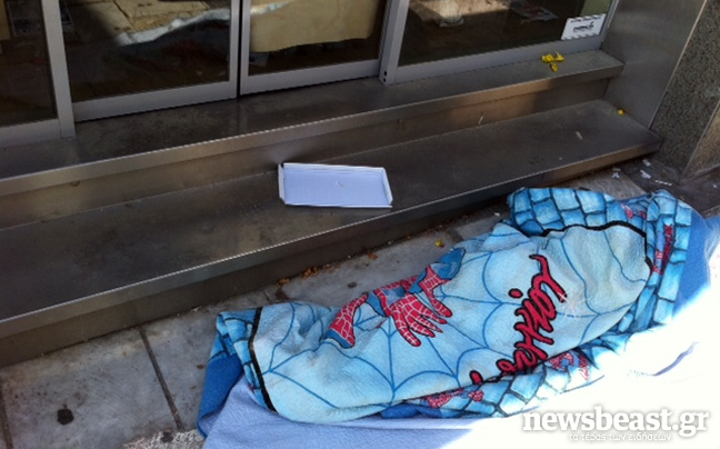 Οδός Ερμού στον πεζόδρομο του Αμαρουσίου. Οι περαστικοί πέφτουν πάνω σε ένα θέαμα που σοκάρει: Με μία κουβέρτα είναι τελείως σκεπασμένο ένα άτομο που αν δεν κουνούσε το κορμί του, δεν θα καταλάβαινε κανείς ότι έχει σκεπαστεί…