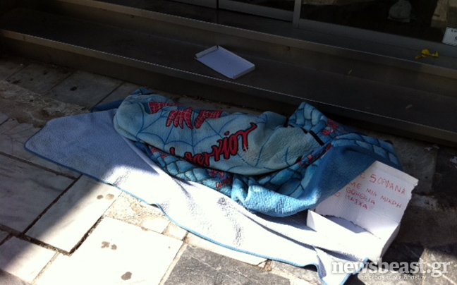 Έξω από την κουβέρτα, υπάρχει μόνο ένα σημείωμα, το οποίο με δυσκολία διακρίνεται. «Είμαστε 5 ορφανά. Βάλε μια μικρή βοήθεια. Καλό Πάσχα».