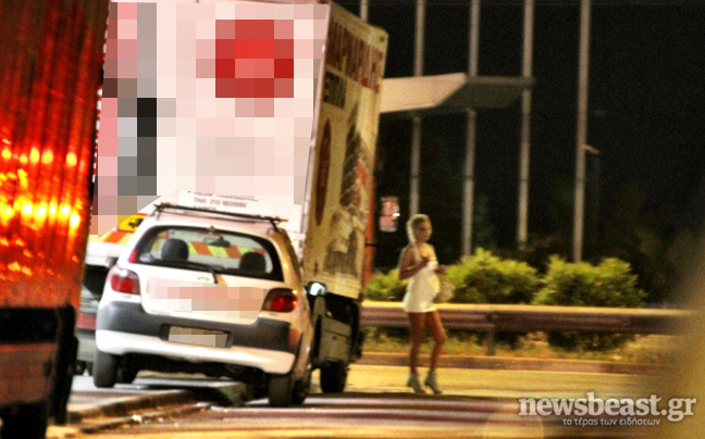 Δύο ακόμη κοπέλες κρύβονται πίσω από φορτηγά και περιμένουν τους πελάτες