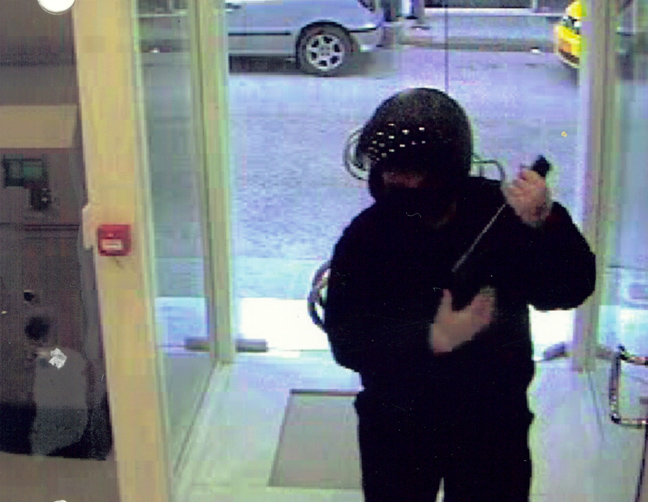 Ένας άνδρας με καλυμμένα τα χαρακτηριστικά του προσώπου του με μαύρο κράνος και με την απειλή καραμπίνας, είχε ακινητοποιήσει υπαλλήλους και πελάτες και κατάφερε να αρπάξει 969.000 δραχμές.
