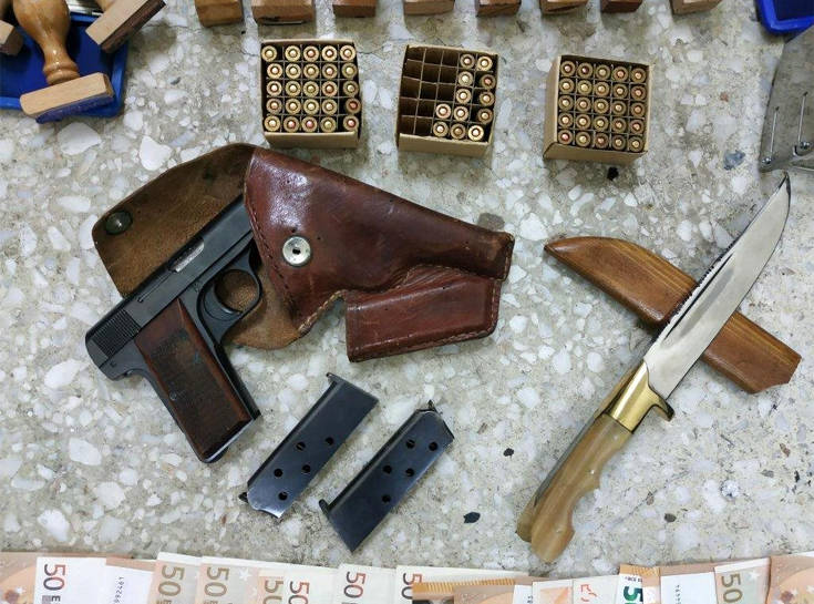 Επίσης, βρέθηκαν και κατασχέθηκαν πιστόλι με 2 γεμιστήρες, 63 φυσίγγια και μαχαίρι, τα οποία προέκυψε ότι ανήκουν στον σύζυγο μέλους της εγκληματικής οργάνωσης, σε βάρος του οποίου σχηματίσθηκε δικογραφία για παράβαση της νομοθεσίας περί όπλων και οδηγήθηκε στην Εισαγγελία Πλημμελειοδικών Αθηνών.