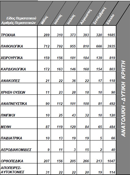 Αναλυτικά τα στοιχεία του ΕΚΑΒ ΚΡΗΤΗΣ για το διάστημα Μάιος-Σεπτέμβριος 2012: