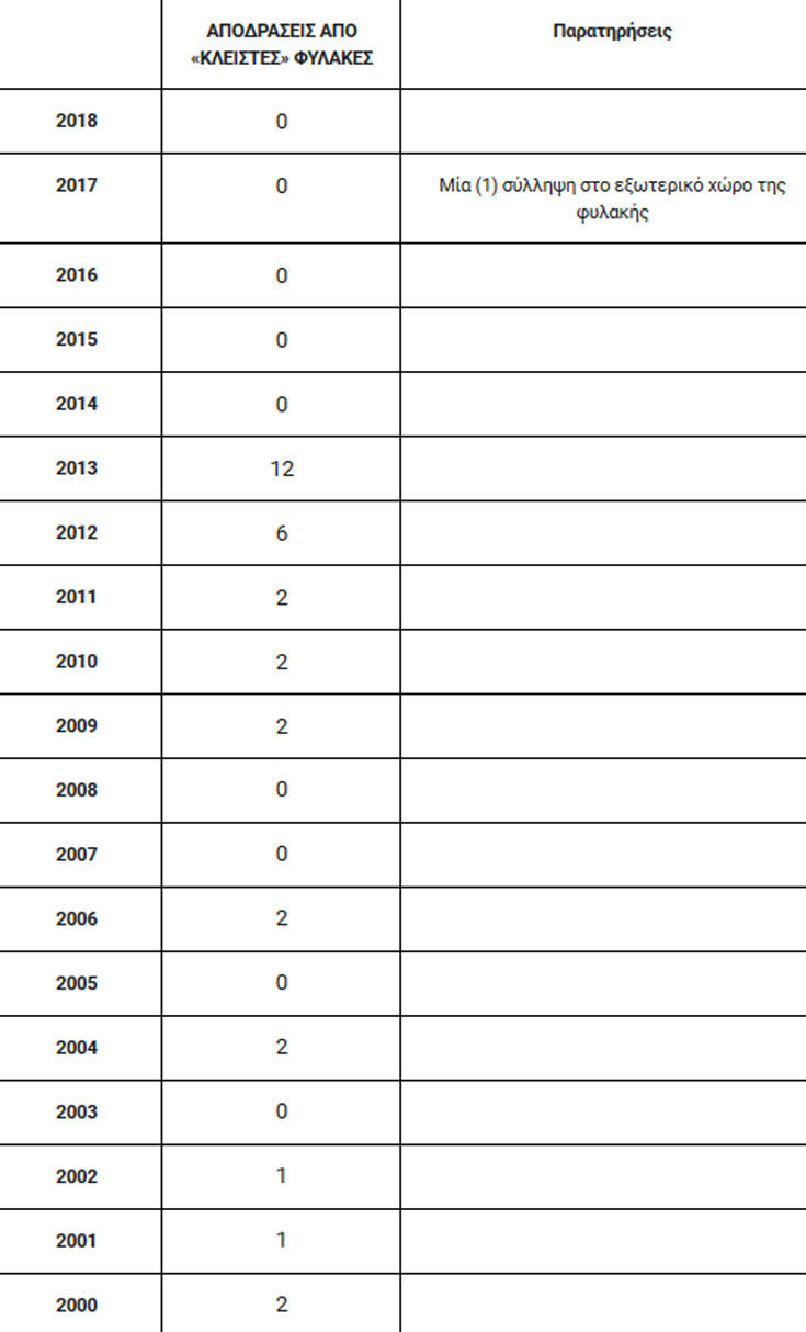 Όπως επισημαίνει σε ανακοίνωση του το υπουργείο «ειδικά για το χρονικό διάστημα των εορτών έχουν δοθεί ρητές εντολές στα Καταστήματα Κράτησης από το Υπουργείο (στις 11 Δεκεμβρίου 2018, στις 19 Δεκεμβρίου 2018 και στις 27 Δεκεμβρίου 2018) για “επίταση των μέτρων ασφαλείας” προκειμένου να αποτραπούν κάθε είδους έκνομες ενέργειες» Επιπλέον, υπογραμμίζει ότι από το 2015 μέχρι σήμερα, «και παρά τις αντίθετες “Κασσάνδρες”, η σημερινή απόδραση είναι η πρώτη που συμβαίνει από κλειστή φυλακή, σε αντίθεση με τα προηγούμενα έτη», ενώ παραθέτει και σχετικό πίνακα με στοιχεία.