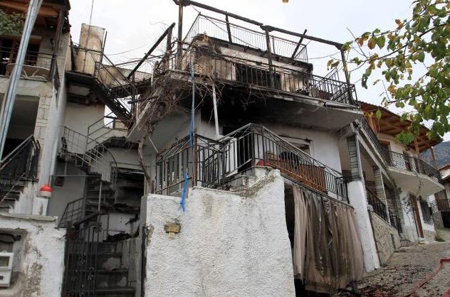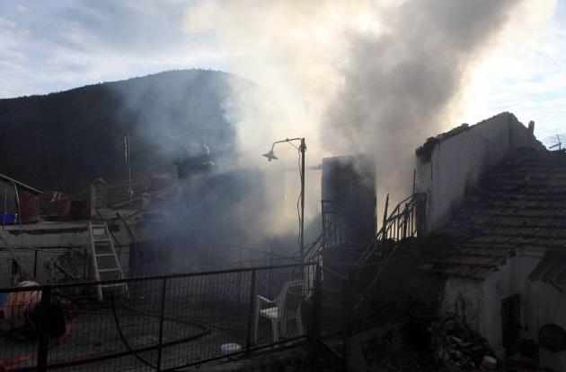 Το σπίτι καταστράφηκε ολοσχερώς, ενώ η φωτιά που εξαπλώθηκε και σε παρακείμενα σπίτια κατασβέστηκε άμεσα.