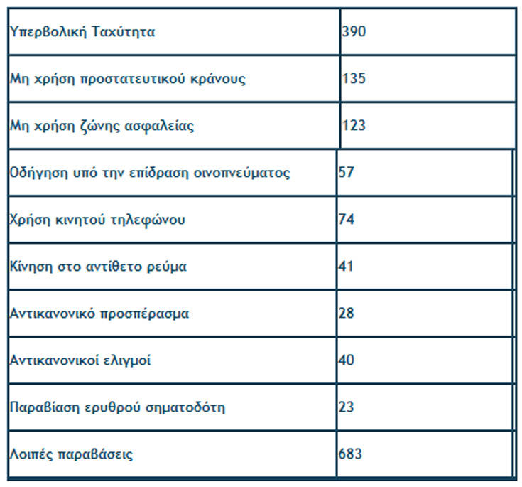 Συγκεκριμένα, συγκροτήθηκαν 105 συνεργεία ελέγχων ενώ πραγματοποιήθηκαν εκτεταμένοι τροχονομικοί έλεγχοι σε οχήματα, σε διάφορες περιοχές της Κρήτης, όπου ελέγχθηκαν συνολικά 3.551 οχήματα, και βεβαιώθηκαν 1.594 παραβάσεις.
